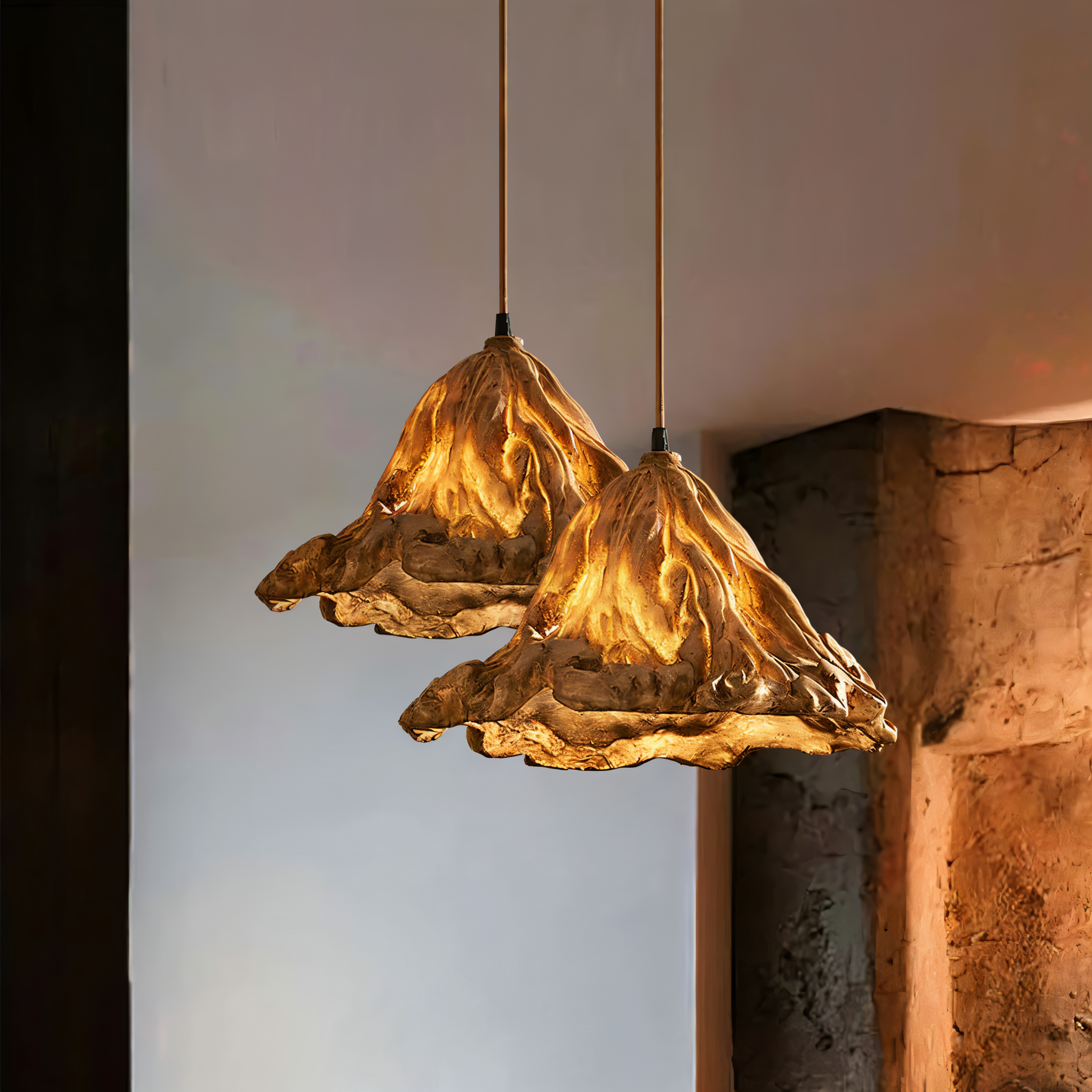 Tento umělecký závěsný lustr z pryskyřice ve vulkanickém stylu je skutečným poutačem pohledů. Unikátní design připomíná tekoucí lávu a hrubé skalní struktury, což vytváří dramatičtější světelné efekty a sochařský akcent ve vašem interiéru. Ideální pro milovníky výrazných kousků a přírodních tvarů.