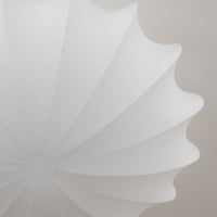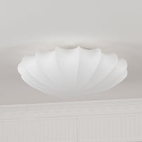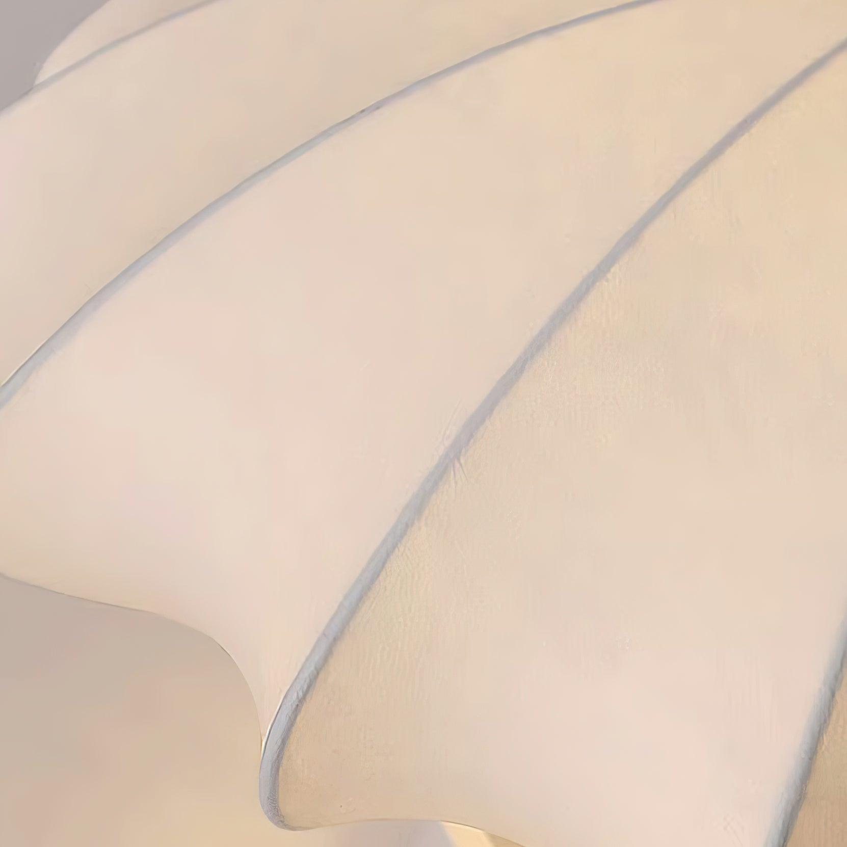 Esta lámpara de techo de tela con forma de concha añade una sensación sutil de lujo a tu interior. Las líneas suaves y onduladas y la superficie textil crean una iluminación cálida y difusa — ideal para el salón, dormitorio o pasillo. Perfecto para quienes aman el diseño elegante con formas naturales.