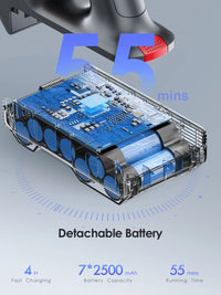 Cet aspirateur sans fil avec moteur 450W offre des performances puissantes dans un design compact et élégant. Grâce à la batterie amovible, vous pouvez aspirer jusqu'à 55 minutes sans interruption. L'écran tactile intuitif offre un contrôle direct des modes et de l'état de la batterie. Idéal pour ceux qui recherchent une solution moderne, puissante et flexible pour le nettoyage quotidien à la maison.