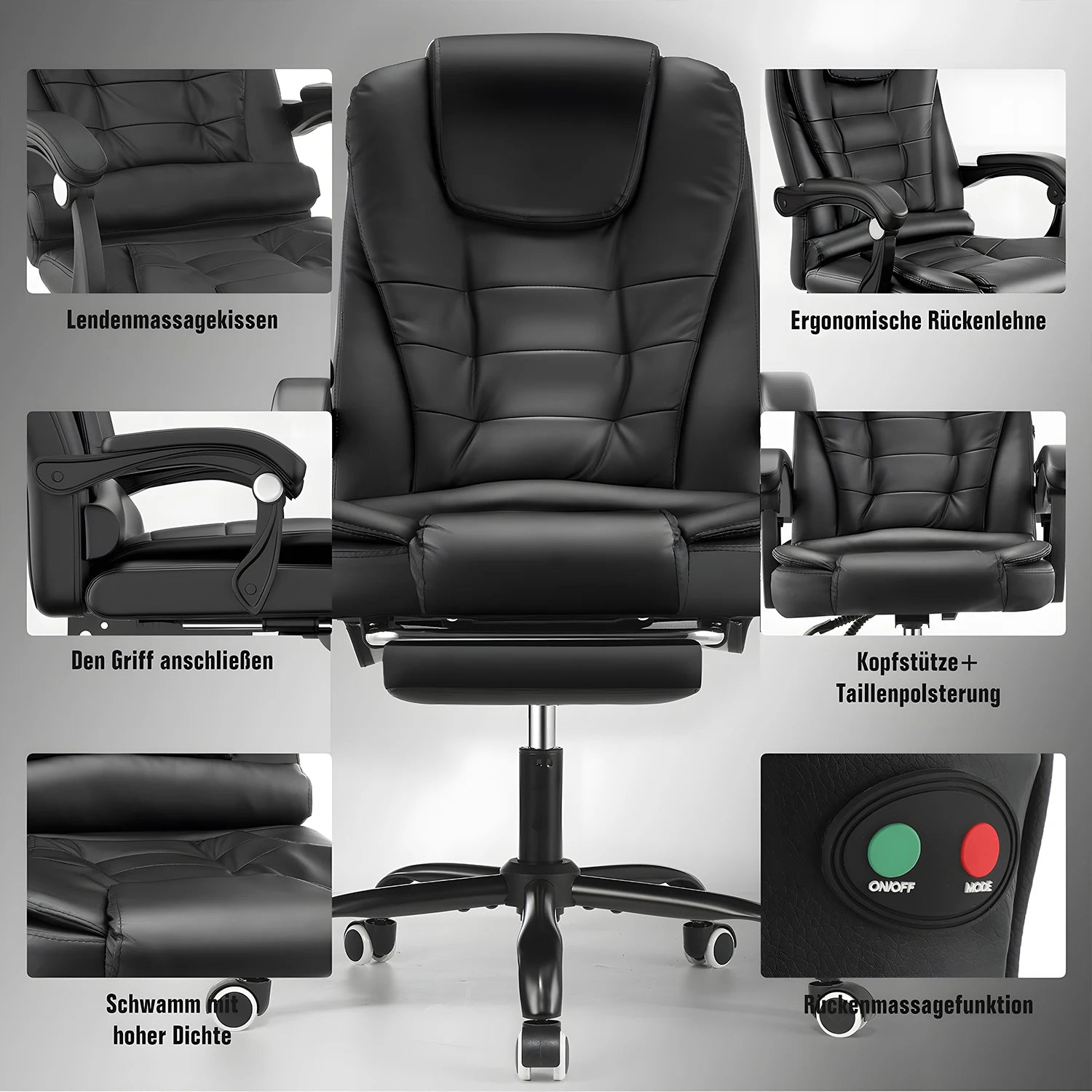 Ez a irodai szék tökéletes egyensúlyt kínál a kényelem és a funkcionalitás között. Felszerelve egy magas háttámlával, karfákkal, egy dönthető mechanizmussal és egy kihúzható lábtartóval az optimális pihenésért. A forgatható szerkezetnek és az elegáns kialakításnak köszönhetően ez az ideális választás mint vezetői szék vagy luxus munkaszék otthonra és irodába.