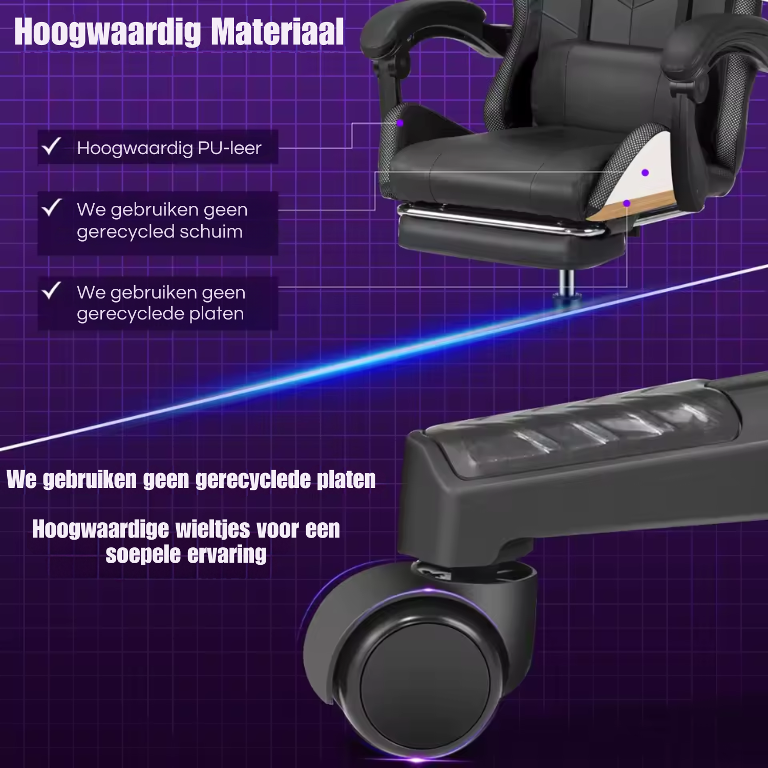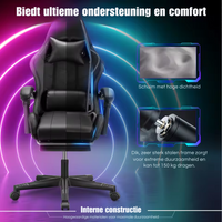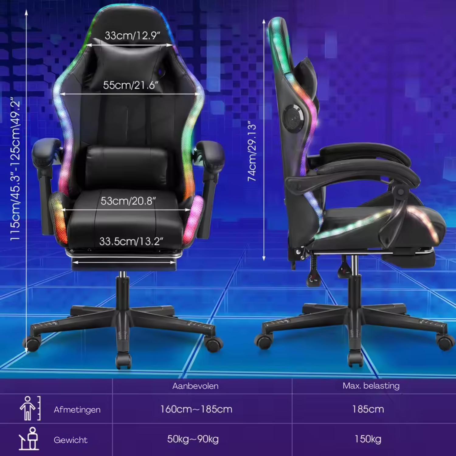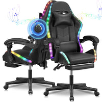 Porta la tua postazione a un livello superiore con questa sedia da gaming RGB. Dotata di illuminazione LED e altoparlanti Bluetooth, vivi un suono coinvolgente e effetti visivi mentre giochi. Il design ergonomico con altezza regolabile garantisce comfort prolungato, ideale per sessioni di gioco intense o lavoro al computer.