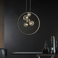 Vuoi dare alla tua sala da pranzo o soggiorno un aspetto moderno e lussuoso? Questa minimalista lampada a sospensione per tavolo da pranzo con sfera di vetro e finitura nera è la combinazione perfetta di stile e funzionalità. L'illuminazione LED calda crea un'atmosfera accogliente, ideale per cene conviviali o un angolo relax.