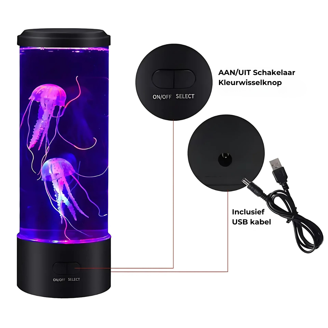 Porta pace e relax in casa con la nostra lampada da tavolo LED ricaricabile. Le meduse realisticamente in movimento e l'illuminazione soffusa creano un'atmosfera calma e accogliente, perfetta per ogni ambiente. Ideale per il soggiorno, la camera da letto o la cameretta dei bambini!