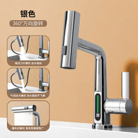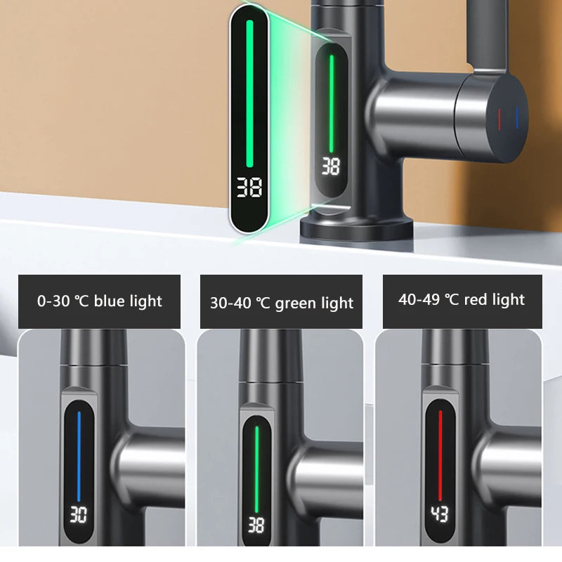 Deze uittrekbare watervalkraan met digitaal display is een slimme oplossing voor de moderne keuken of badkamer. Dankzij het innovatieve ontwerp heb je altijd zicht op de watertemperatuur – zonder dat er batterijen nodig zijn. Gemaakt van duurzaam SUS304 roestvrij staal, combineert deze kraan een strak design met langdurige prestaties en extra comfort bij gebruik.
