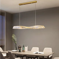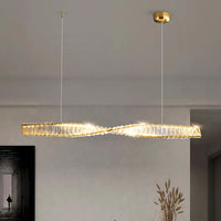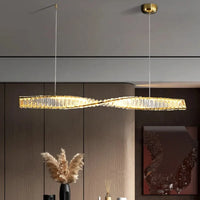 Deze moderne kristallen LED hanglamp met een uniek éénwoord spiraal design is een echte blikvanger boven je eettafel, keukeneiland of bar. Het luxe ontwerp combineert elegante glans met functionele verlichting. De hanglamp voegt stijl toe aan elk interieur met hoogwaardige afwerking en energiezuinige LED-verlichting.