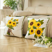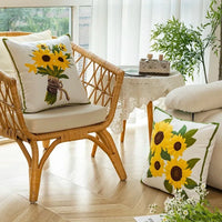 Deze katoenen kussenhoes van 45x45 cm is afgewerkt met een prachtig geborduurd zonnebloemmotief en brengt warmte en vrolijkheid in je interieur. Perfect als sierkussen op de bank, in de woonkamer of als decoratief accent in hotels en gastverblijven.