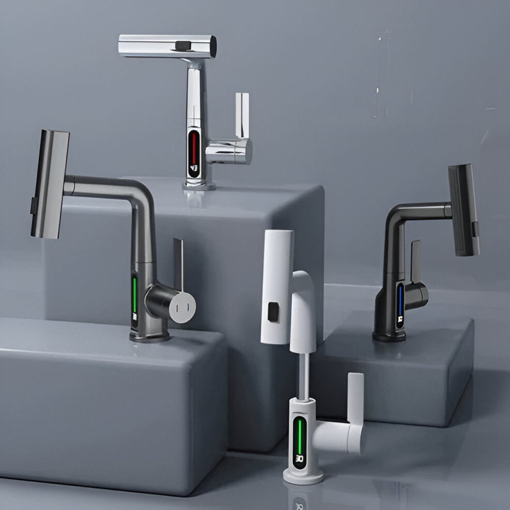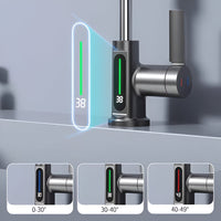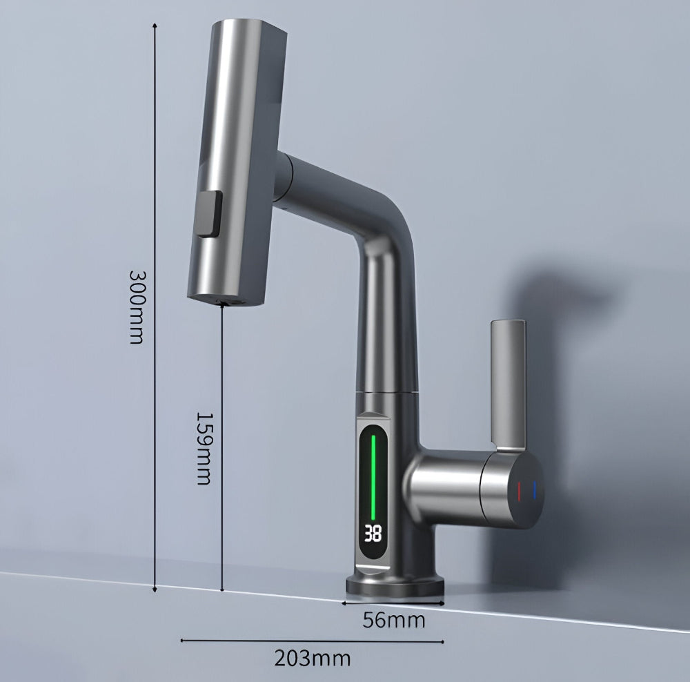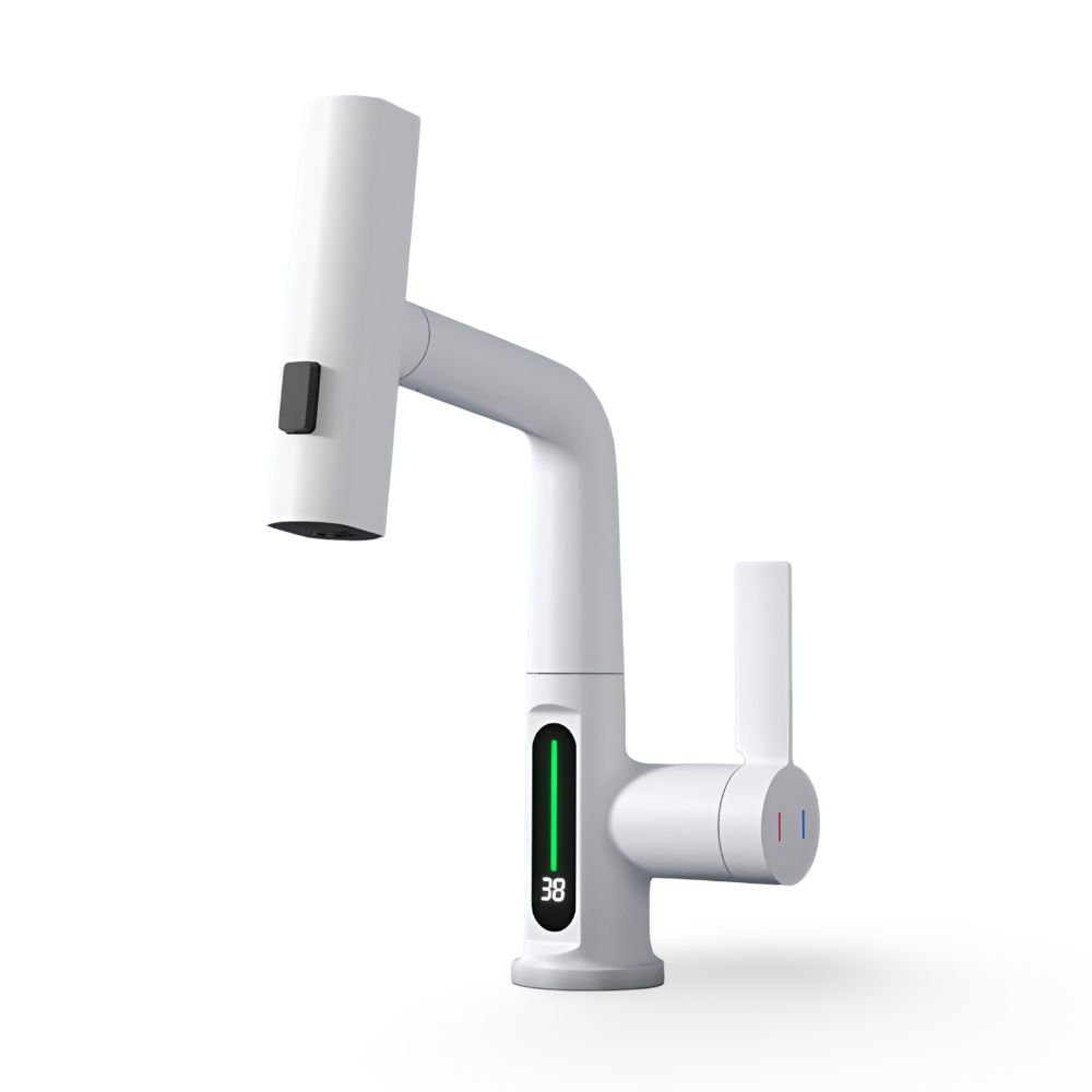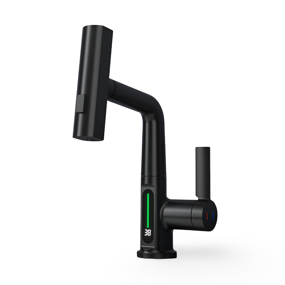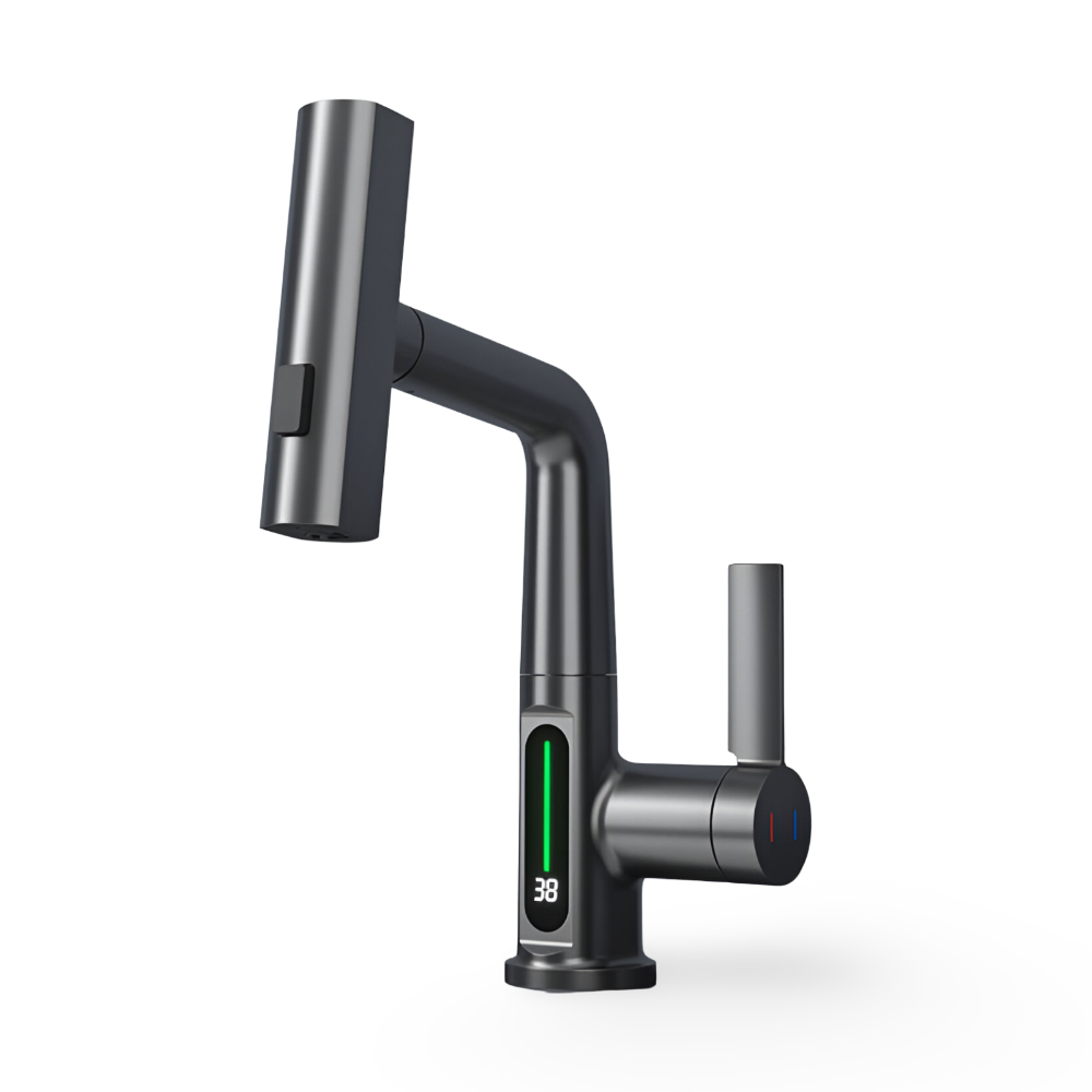 Ervaar ultiem gebruiksgemak met deze moderne draaibare keukenkraan met geïntegreerd temperatuurdisplay. Dankzij het 360° draaibare ontwerp kun je moeiteloos elke hoek van je spoelbak bereiken. Het digitale scherm geeft de actuele watertemperatuur weer, zodat je altijd zeker bent van comfortabel gebruik – ideaal voor koken, afwassen of handhygiëne. Deze kraan combineert stijlvol design met functionele technologie voor een slimme keukenupgrade.