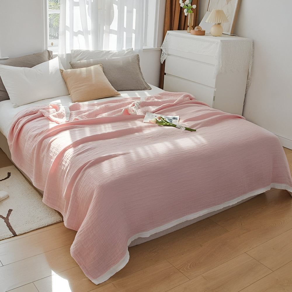Deze meerlagige mousseline katoenen zomerdeken is de ideale keuze voor warme nachten. Vervaardigd uit 100% puur katoen in meerdere lagen, biedt het een optimale combinatie van lichtgewicht comfort en ademende eigenschappen. De luchtige textuur van mousseline zorgt voor uitstekende ventilatie en een zachte sensatie op de huid. Ideaal voor de zomermaanden of het hele jaar door te gebruiken in goed verwarmde omgevingen.