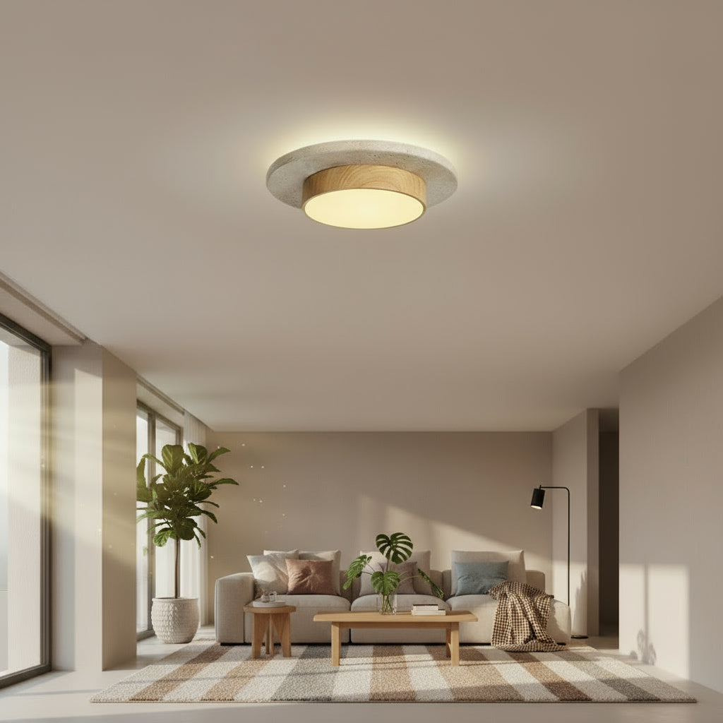 Creëer een rustgevende sfeer met deze Wabi Sabi plafondlamp, gemaakt van natuursteen in een warme gele tint. De ronde vorm en het retro design voegen subtiele elegantie toe aan gangen, balkons of woonkamers. Met keuze tussen 3000K en 6000K LED-verlichting, biedt deze lamp zowel warme als heldere verlichting.