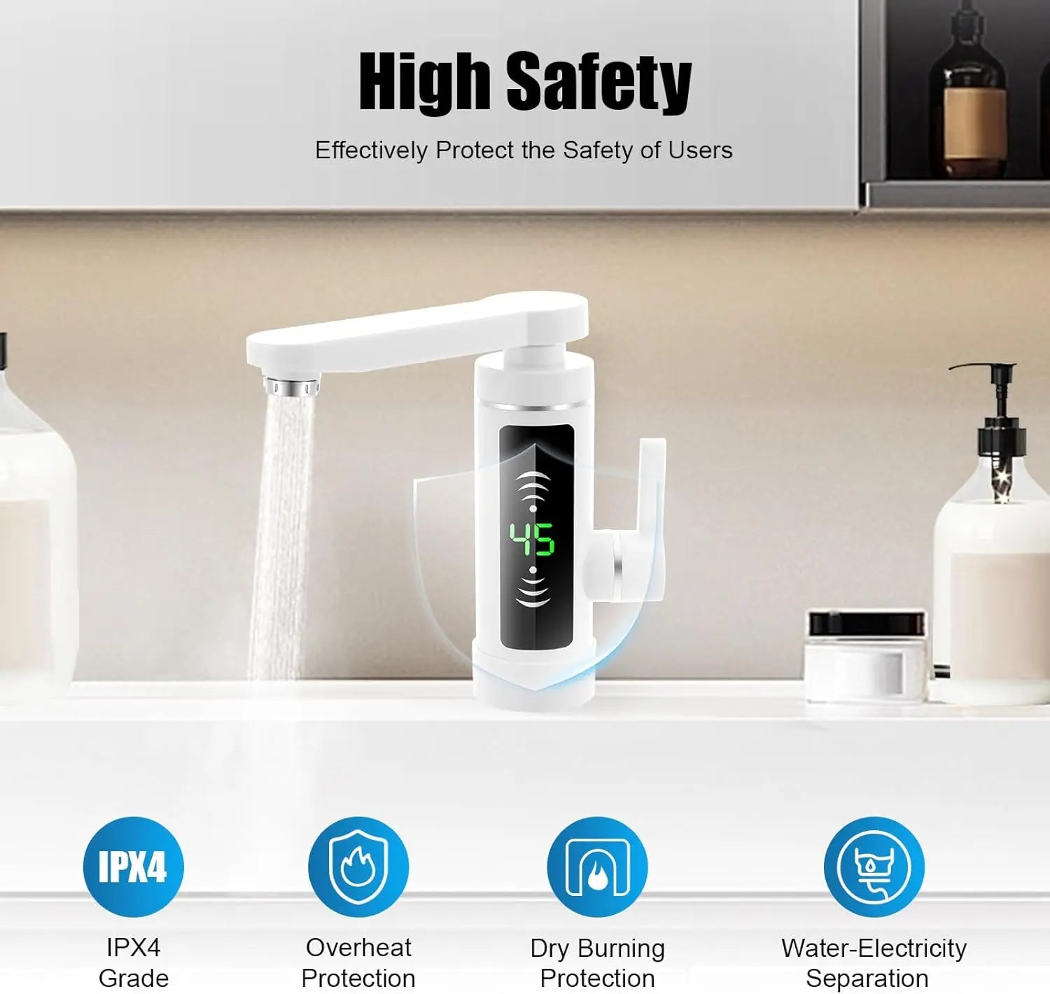 Deze elektrische kraan met doorstroomverwarmer levert direct warm water dankzij het krachtige 3 kW element. De ingebouwde LED-temperatuurweergave toont real-time de watertemperatuur, terwijl de 360° draaibare uitloop flexibiliteit biedt bij gebruik in keuken of badkamer. Gemaakt van duurzaam roestvrij staal voor langdurig en betrouwbaar gebruik. Perfect voor wie energiezuinig en efficiënt warm water wil, zonder aparte boiler.