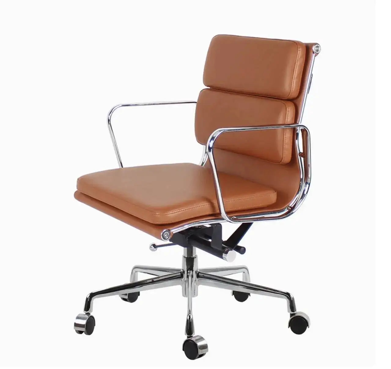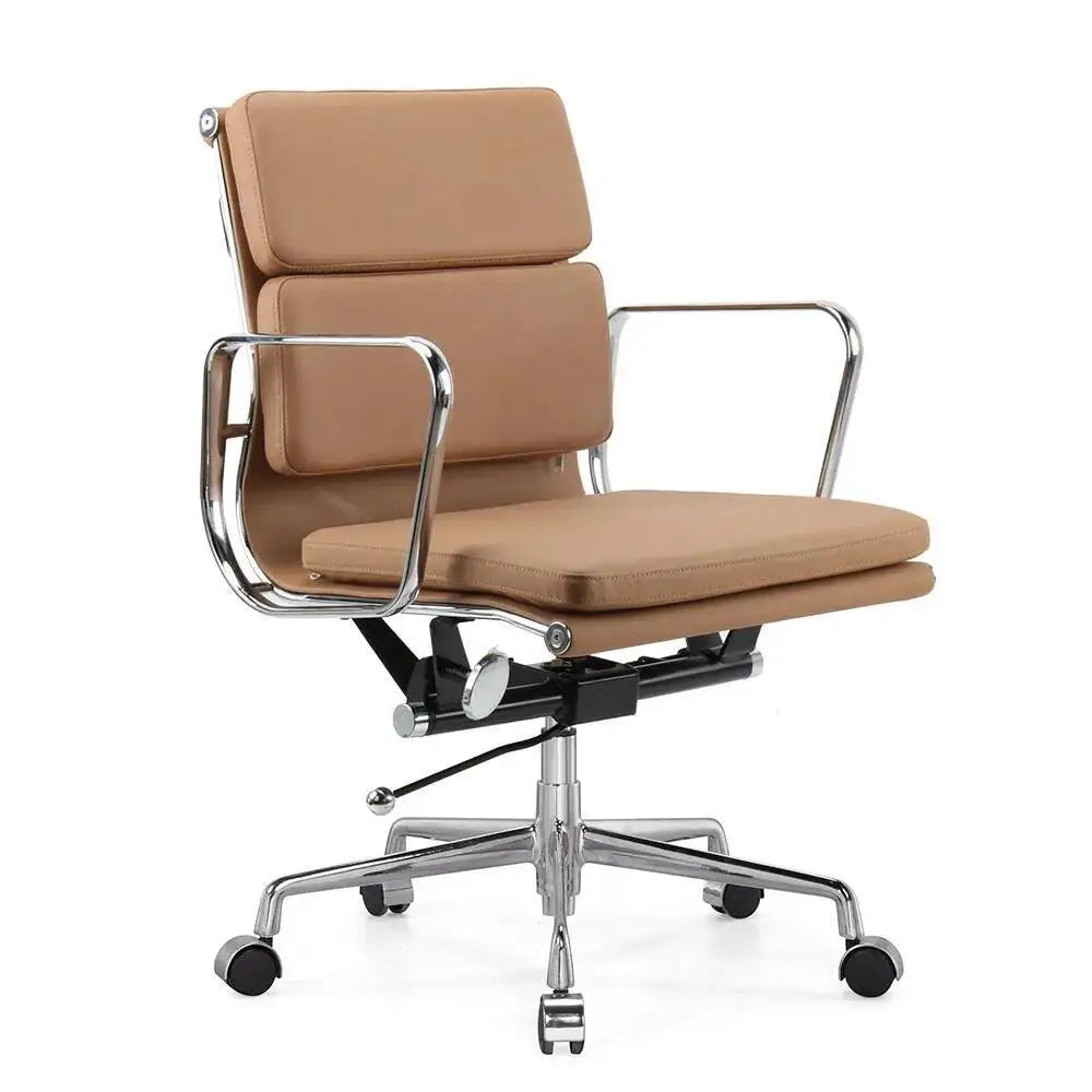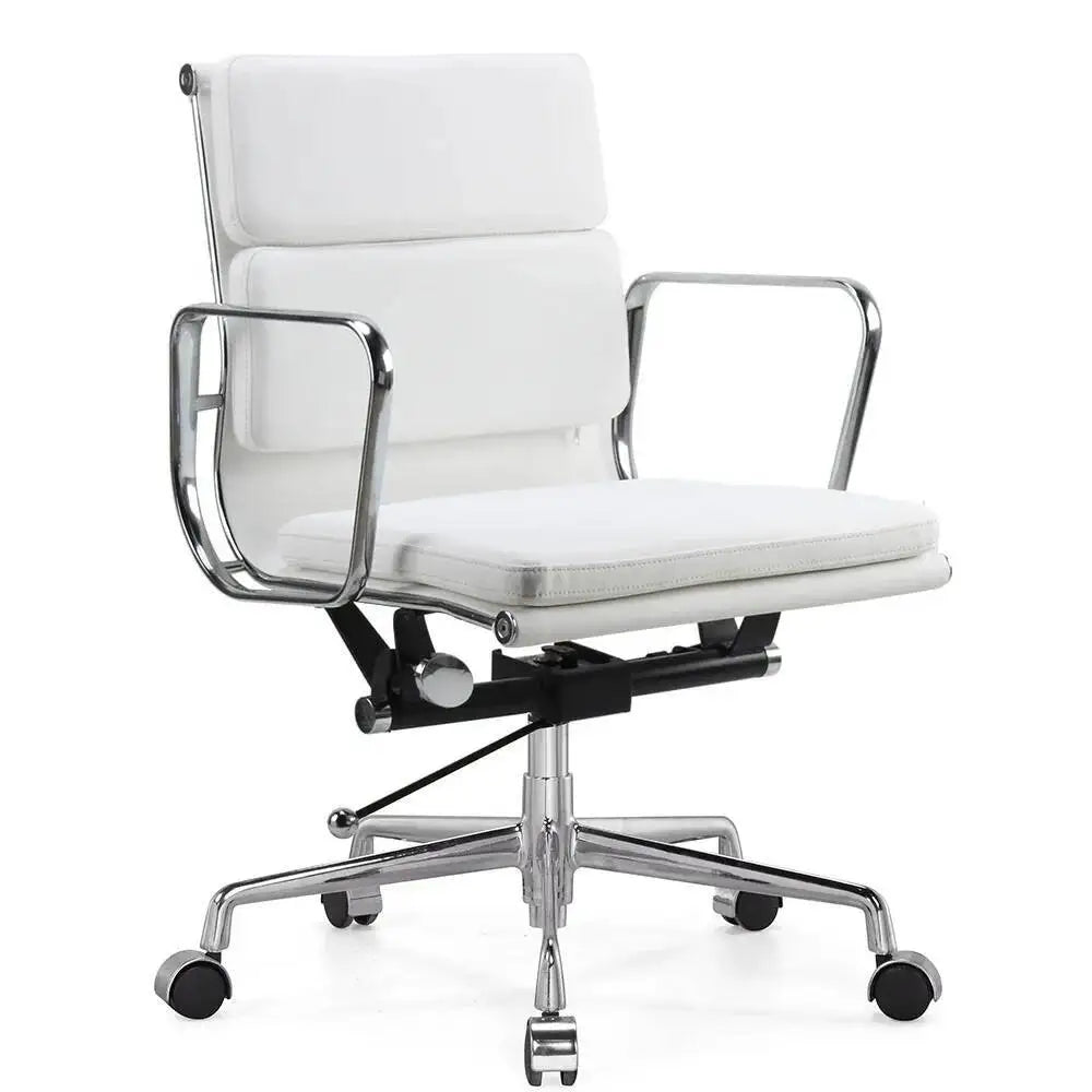 Deze comfortabele bureaustoel in Eames stijl combineert een strak ontwerp met verstelbare zithoogte en draaibare functionaliteit, ideaal voor thuiswerk, vergaderruimtes of creatieve studio's.
