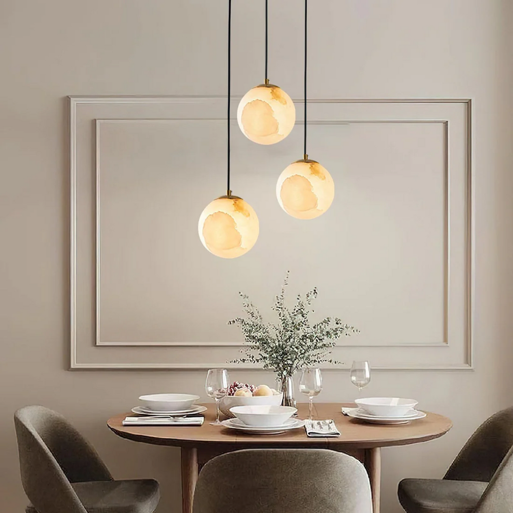 Deze hanglamp voor eettafel biedt een verfijnde uitstraling die zowel stijlvol als functioneel is. Het elegante travertijn-albast ontwerp verspreidt zacht, warm licht, ideaal voor elke ruimte, van lampen in woonkamer tot een lamp slaapkamer. Creëer een gezellige sfeer en geef je interieur een moderne upgrade met deze unieke hanglamp.