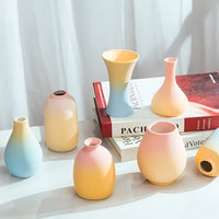 Deze elegante keramieken vaas in macaronkleuren brengt kleur, verfijning en rust in elk interieur. De zachte pastelkleuren doen denken aan Franse macarons en zorgen voor een lichte, vrolijke uitstraling op tafel, in een open kast of op een dressoir. Perfect voor droogbloemen of als losstaand decoratief object in een modern of Scandinavisch interieur.