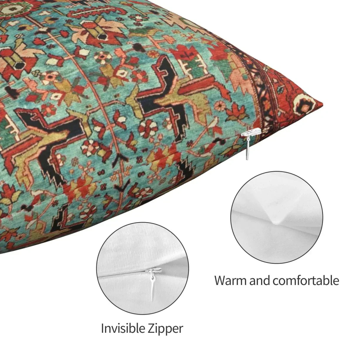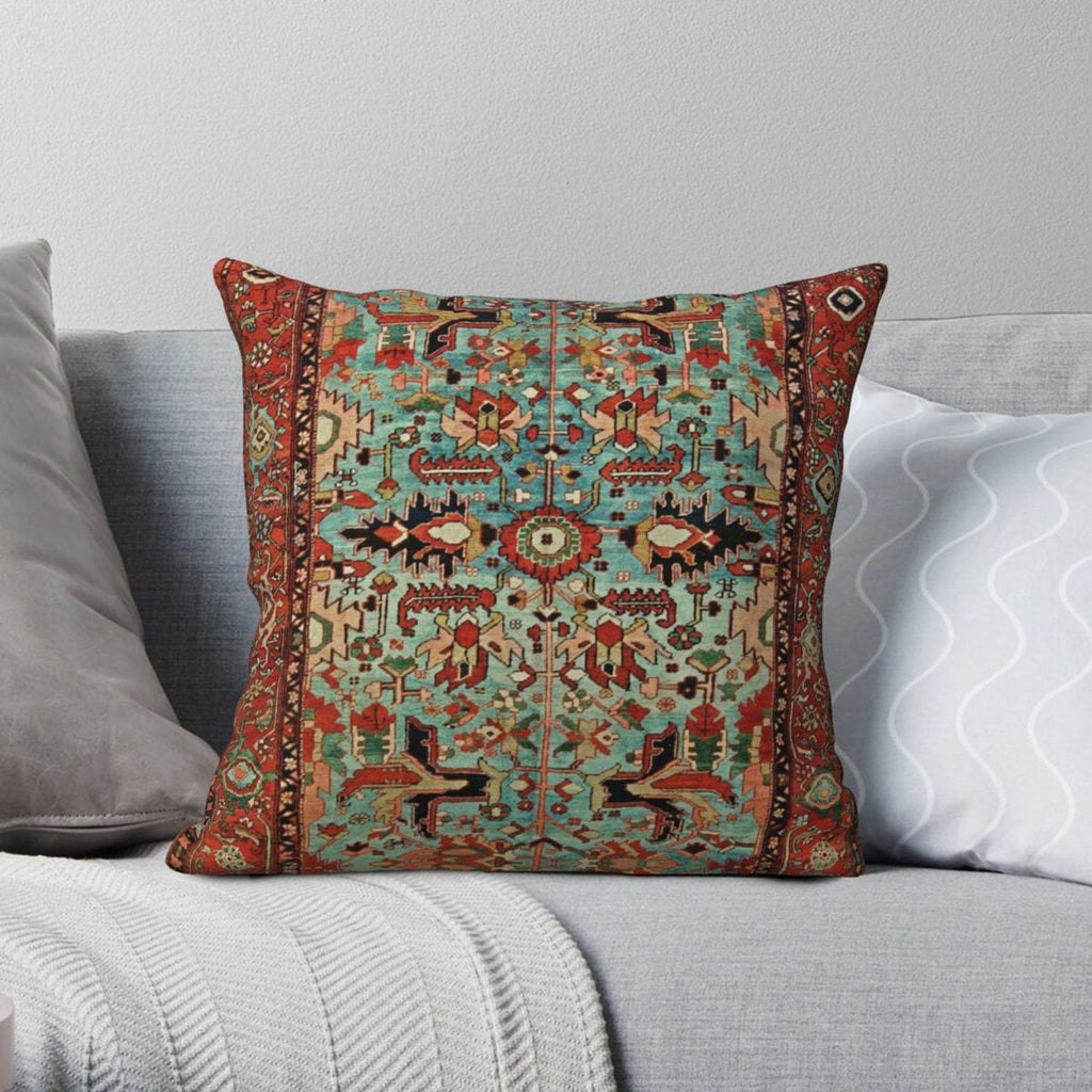 Dit sierkussen met Heriz-patroon is geïnspireerd op klassieke Perzische tapijtontwerpen en voegt een rijke, tijdloze sfeer toe aan je interieur. Perfect voor op de bank, het bed of een fauteuil, en ideaal voor liefhebbers van oosterse of vintage woonstijlen.