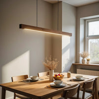 Deze langwerpige houten hanglamp brengt een warme, natuurlijke sfeer boven je eettafel. Het strakke en tijdloze ontwerp combineert natuurlijk hout met een industrieel randje, waardoor het perfect past in zowel moderne als landelijke interieurs. De langgerekte vorm zorgt voor gelijkmatige verlichting over de hele tafel, ideaal voor diners of gezellige avonden. Gemaakt van hoogwaardig hout en metaal voor duurzaamheid en uitstraling.