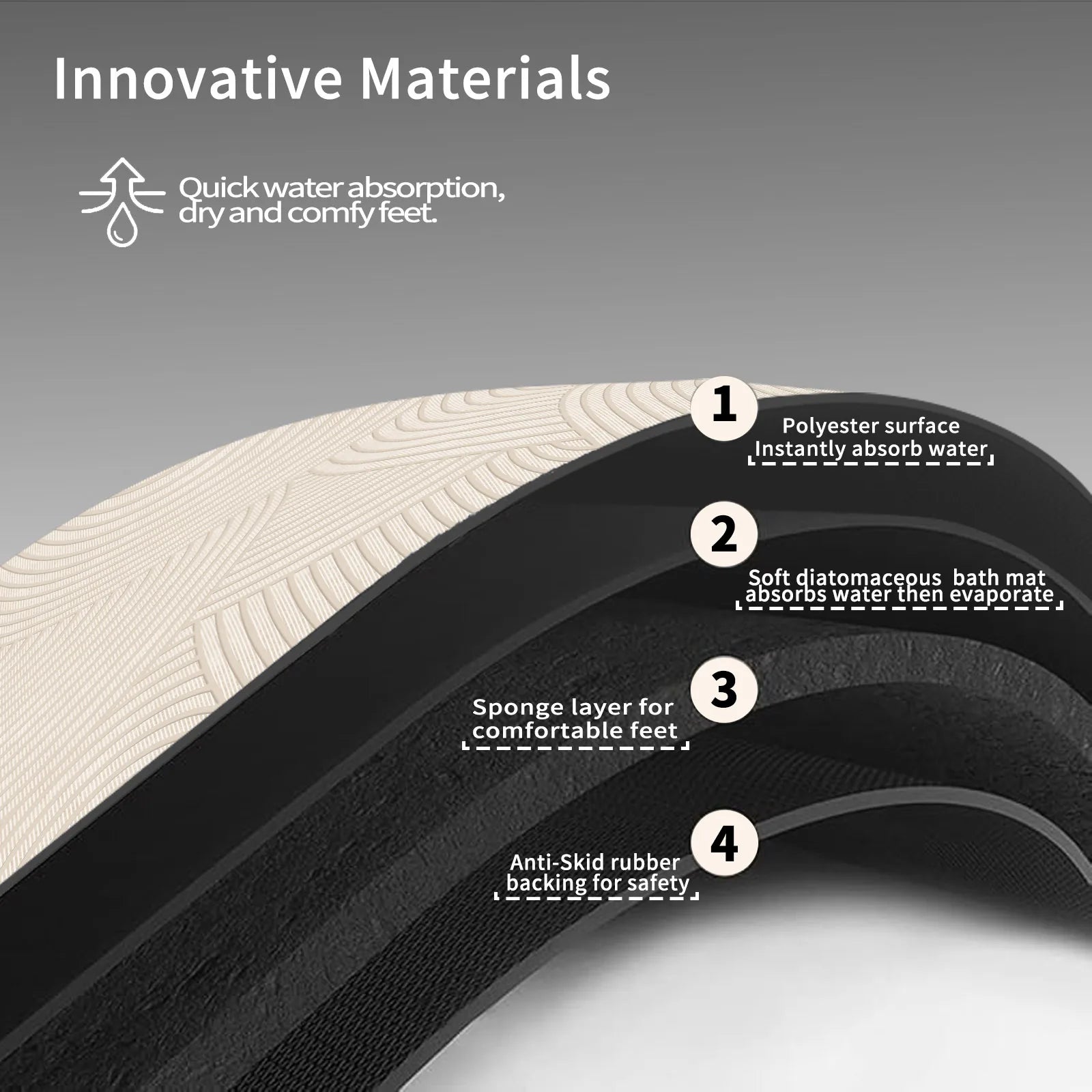 Houd je vloer droog en veilig ontmoet deze superabsorberende badmat. Dankzij de antislip achterkant blijft de mat stevig op z’n plek – ideaal voor natte vloeren na het douchen of baden. Het sneldrogende materiaal voorkomt schimmelvorming en voelt comfortabel aan onder je voeten. Makkelijk in onderhoud en volledig wasbaar in de machine.