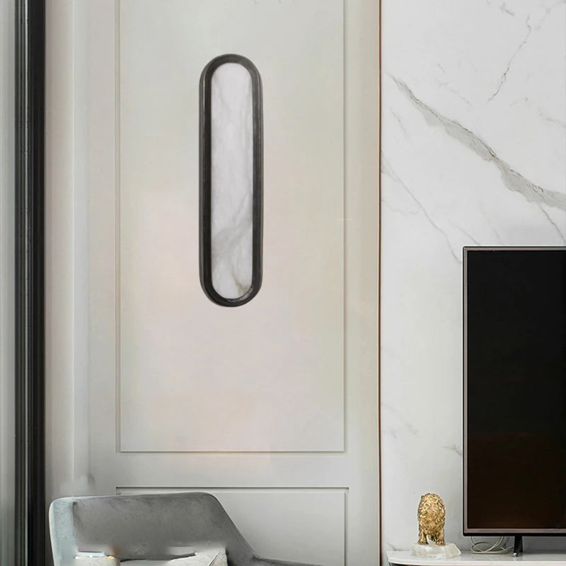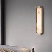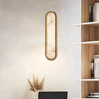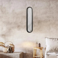 Voeg een vleugje luxe toe aan je interieur met deze elegante ovale wandlamp van natuurmarmer en met een afwerking in goud, zwart en koper. Ideaal voor de slaapkamer, badkamer, hal of hotelkamer, dankzij het strakke ontwerp en de duurzame afwerking. De ingebouwde LED-verlichting zorgt voor een warme en efficiënte sfeer.