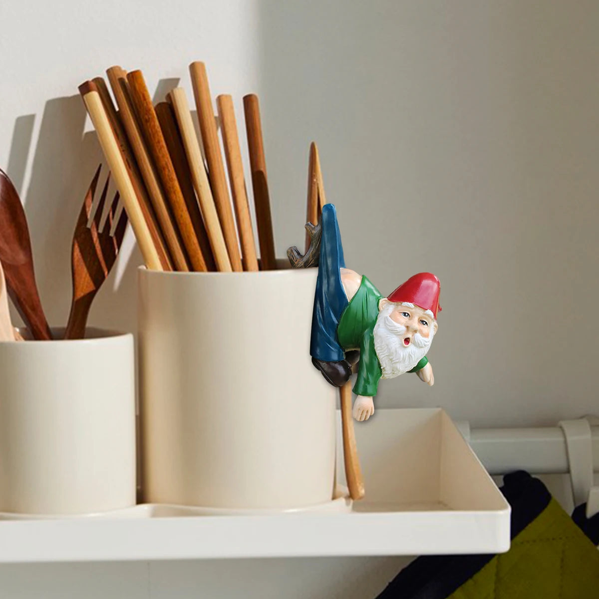 Deze grappige kabouter bloempot hanger is een speels detail voor je bloempotten, tuin of balkon. Het ontwerp met een kabouter die met zijn broek aan takken hangt zorgt voor een vrolijke en unieke uitstraling. Gemaakt van duurzaam hars, waardoor het ornament weerbestendig en geschikt is voor zowel binnen als buiten. Een originele decoratie die altijd een glimlach oproept.