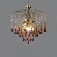 De Phoena kroonluchter straalt pure elegantie uit met zijn luxueuze glazen kristaldruppels die trapsgewijs neervallen uit een stijlvol messing frame. Deze indrukwekkende hanglamp creëert een schitterend lichtspel en is perfect voor hoge plafonds in de woonkamer, eetruimte of hal. Met zijn combinatie van klassieke glamour en moderne verfijning vormt deze kroonluchter een waar pronkstuk in elk interieur.