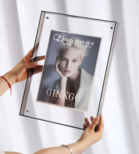 Deze moderne fotolijst van helder acryl combineert minimalistisch design met maximale zichtbaarheid. Door de volledig transparante afwerking lijkt je foto of kunstwerk te zweven, wat zorgt voor een stijlvolle, onopvallende omlijsting. Perfect voor foto's, prints of certificaten op bureau, plank of muur.