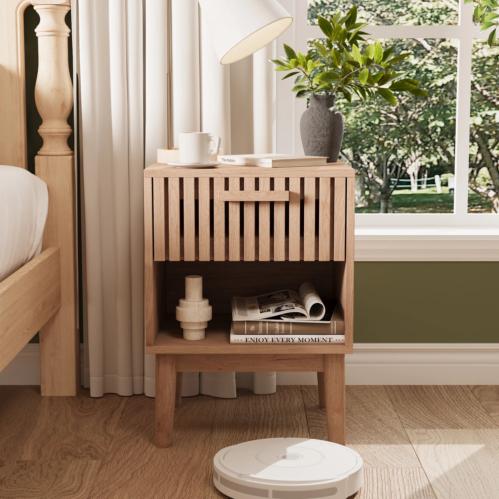 De Solvia nachtkastjes zijn een stijlvolle aanvulling voor jouw slaapkamer, woonkamer of thuiskantoor. Met hun strakke design en neutrale uitstraling passen ze moeiteloos in elk interieur. Elk kastje is voorzien van een handige lade voor persoonlijke spullen en een open vak voor boeken, decoratie of je telefoon.