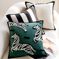 Dit luxe geborduurde sierkussen met elegante paardenprint is een stijlvol detail voor je woonkamer, slaapkamer of bank. Verkrijgbaar in 30x50 cm en 45x45 cm, passend bij verschillende kussens. Het verfijnde borduursel en de hoogwaardige afwerking maken dit een prachtige toevoeging aan je interieur. Perfect om sfeer en karakter toe te voegen aan elke ruimte.