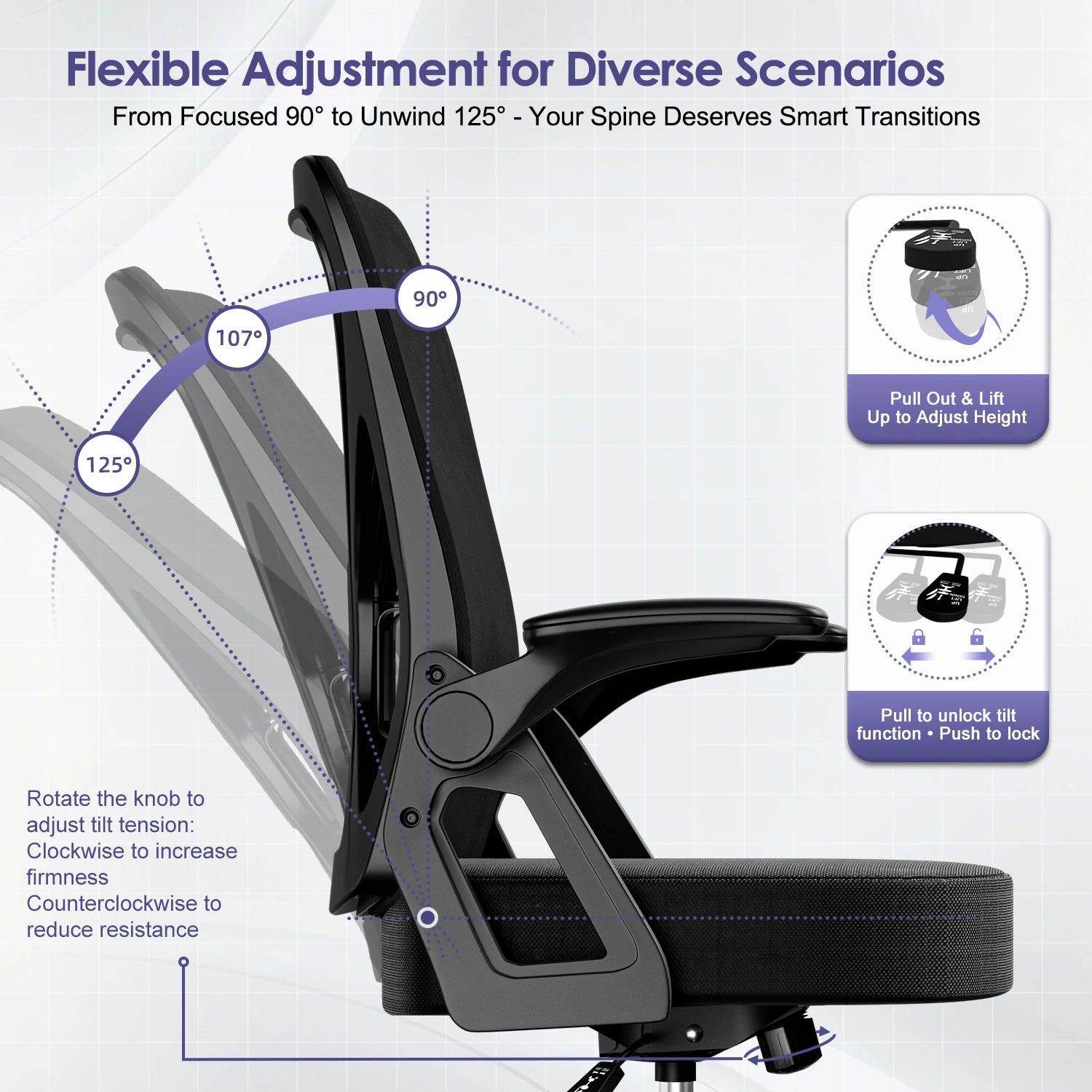 Deze ergonomische bureaustoel met ademende mesh rugleuning en verstelbare zithoogte is ontworpen voor optimale ondersteuning tijdens lange werkdagen. Dankzij de inklapbare armleuningen past hij moeiteloos onder elk bureau. Ideaal voor je thuiswerkplek of kantoor, met slimme functies die comfort en productiviteit verhogen.