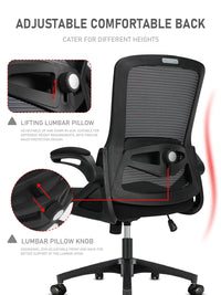 Deze ergonomische bureaustoel biedt een combinatie van lendensteun, verstelbare hoogte en 90° opklapbare armleuningen ideaal voor productieve werkdagen thuis of op kantoor.