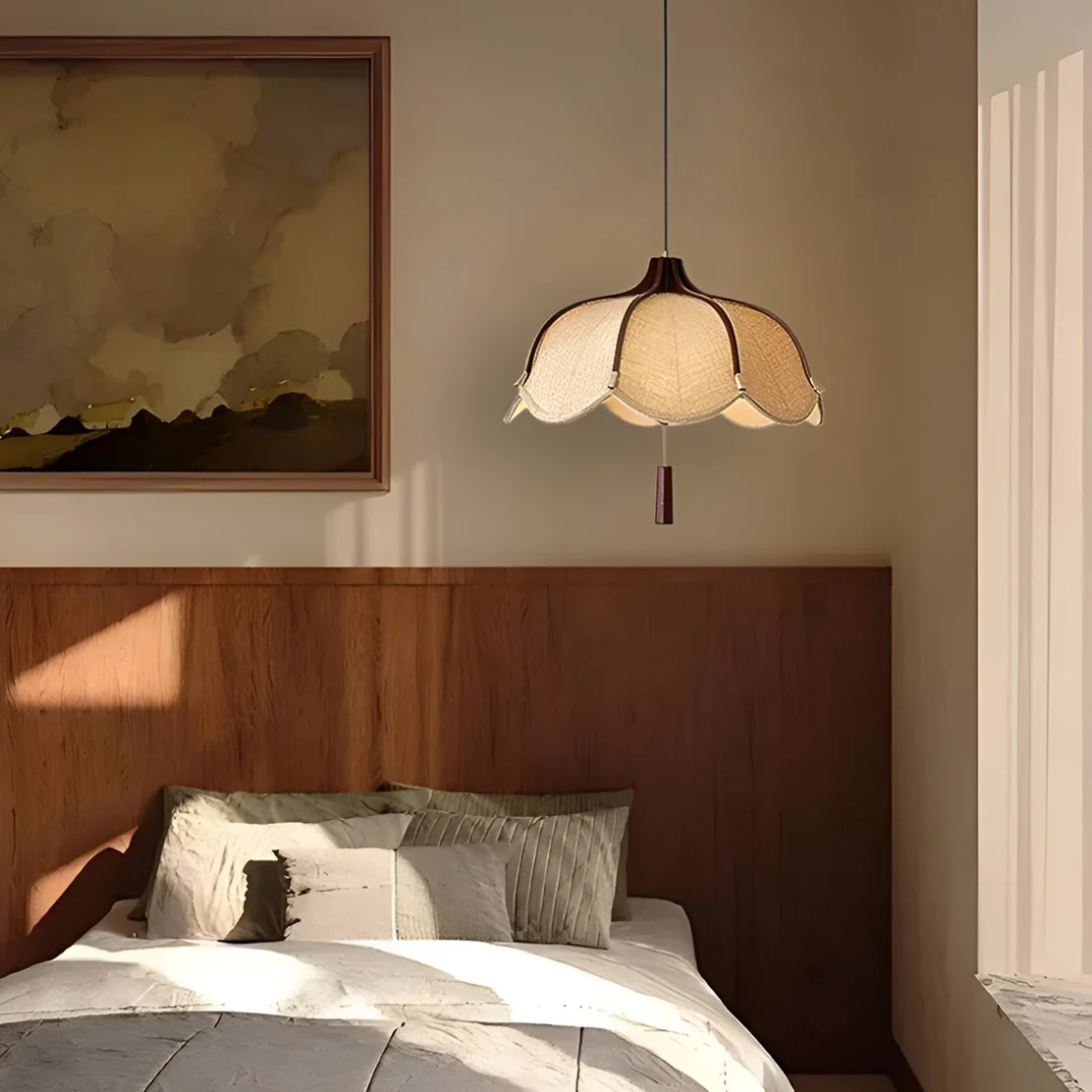 Deze elegante hanglamp combineert Japans Wabi-Sabi design met warme, natuurlijke materialen en is perfect als hanglamp eettafel of lamp woonkamer. De bloemvormige kap van stof zorgt voor een zachte lichtval die rust en harmonie brengt in elke ruimte. Of je nu dineert, leest of ontspant, deze hanglamp voor eettafel of slaapkamer maakt van licht een stijlvol statement. Ontdek hoe licht en lampen je interieur kunnen transformeren.