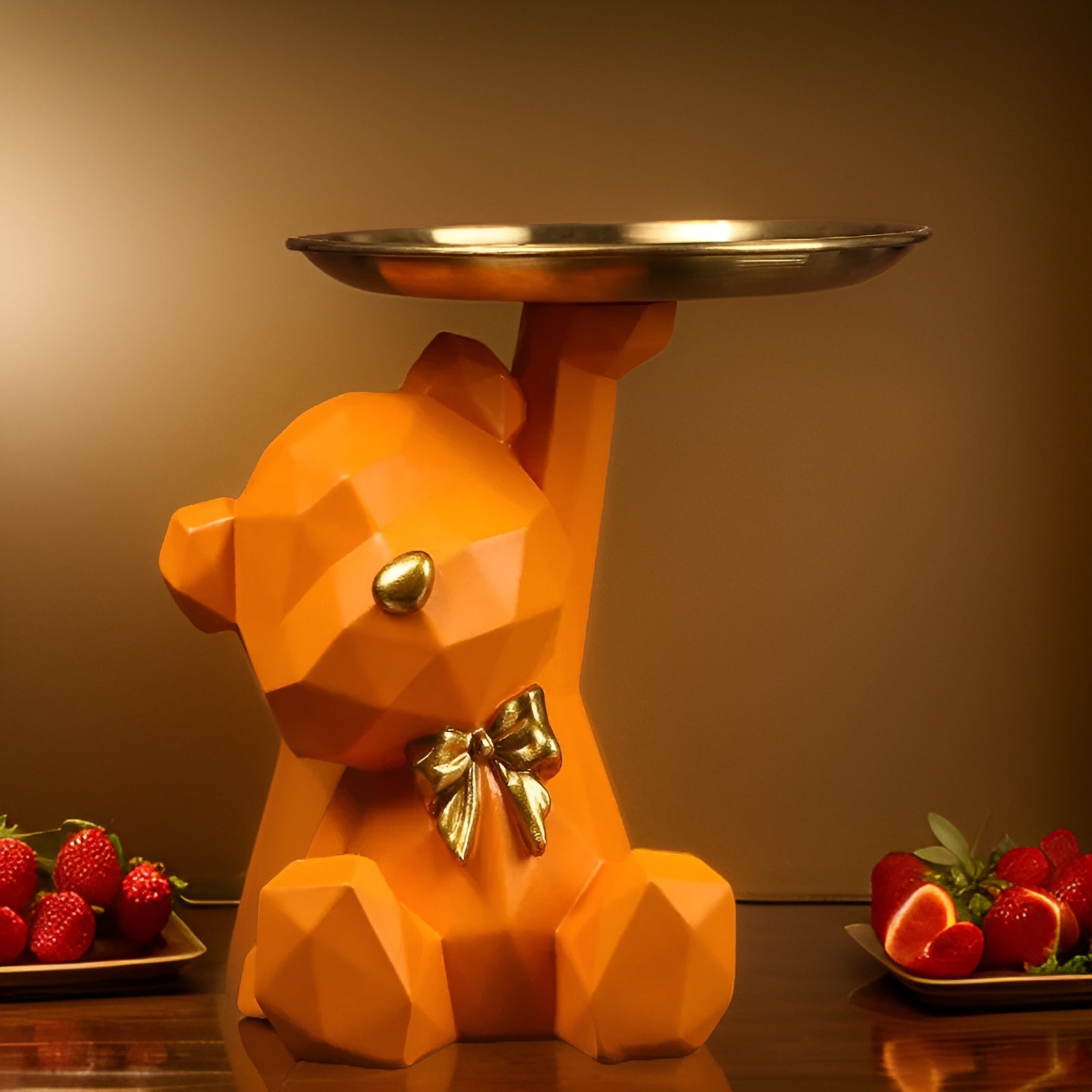 Deze geometrische berenfiguur van kunsthars is niet alleen een decoratief statement, maar ook een praktische sleutelhouder of opbergtray. Dankzij het stevige ontwerp en de uitgesproken vorm is hij perfect voor in de hal, op een bijzettafel of bureau. Een originele mix van kunst en functie voor een opgeruimd én stijlvol interieur.