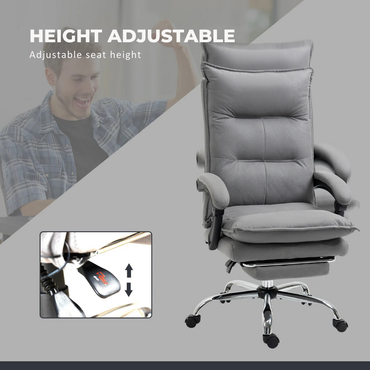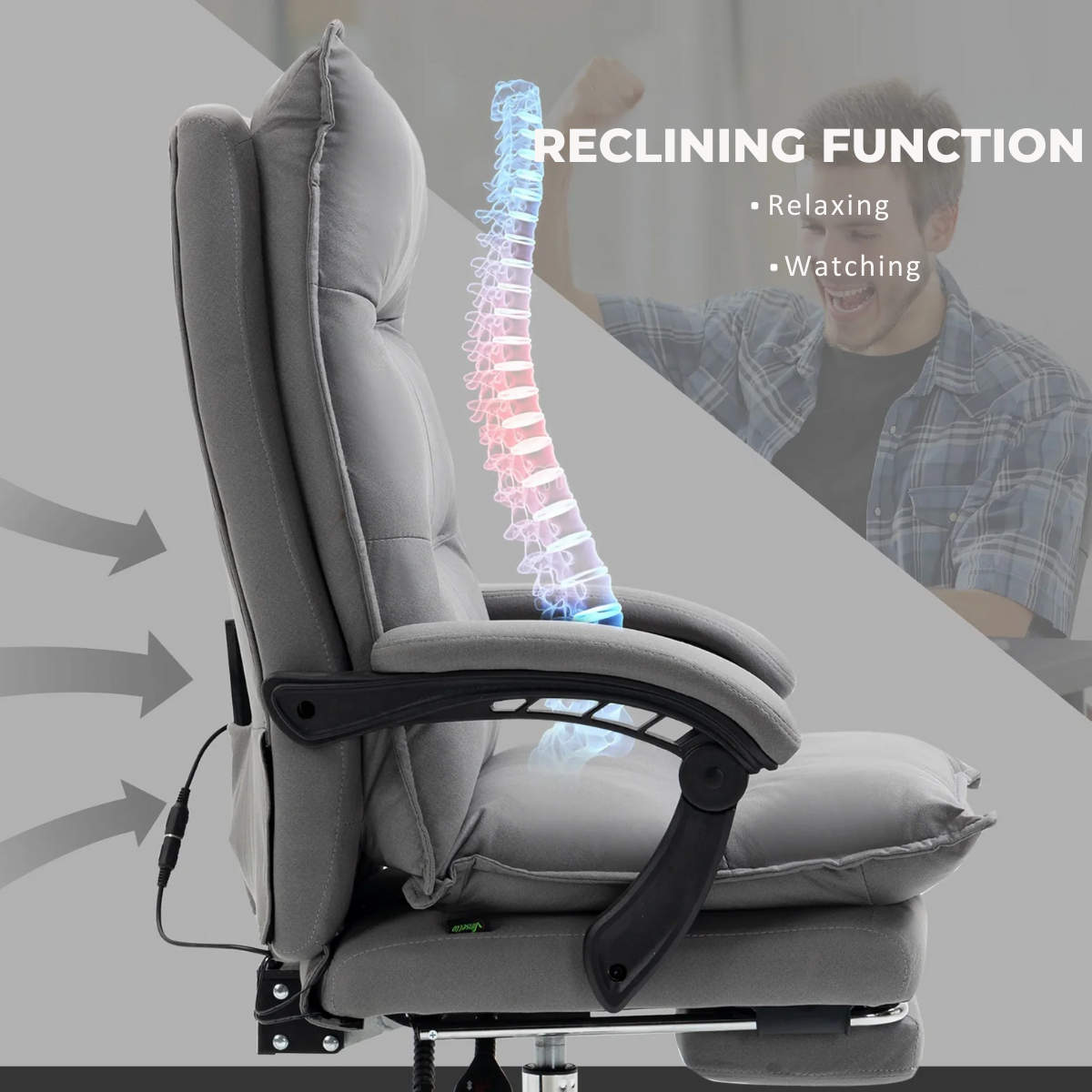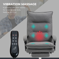 Deze luxe bureaustoel biedt vibrerende massage, verwarmingsfunctie, een kantelbare rugleuning en een uitschuifbare voetsteun — perfect voor wie comfort en ontspanning zoekt tijdens werk of gamen.